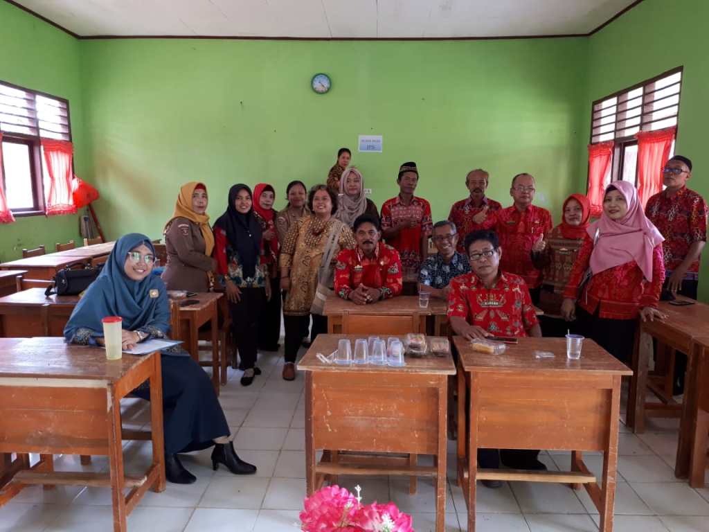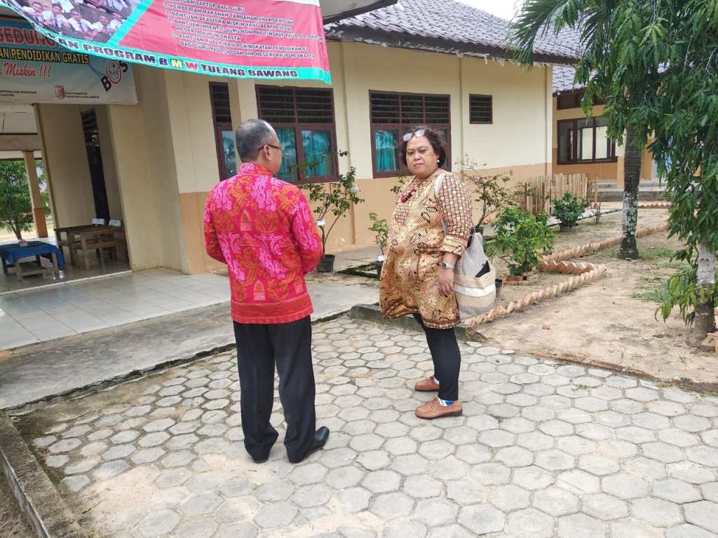 2. Penyambutan kedatangan Kabid Ketenagaan Disdik Tulang Bawang, Yohana Sri Wahyuni, M.Pd. oleh Kepala SMPN 1 Gedungaji Baru.