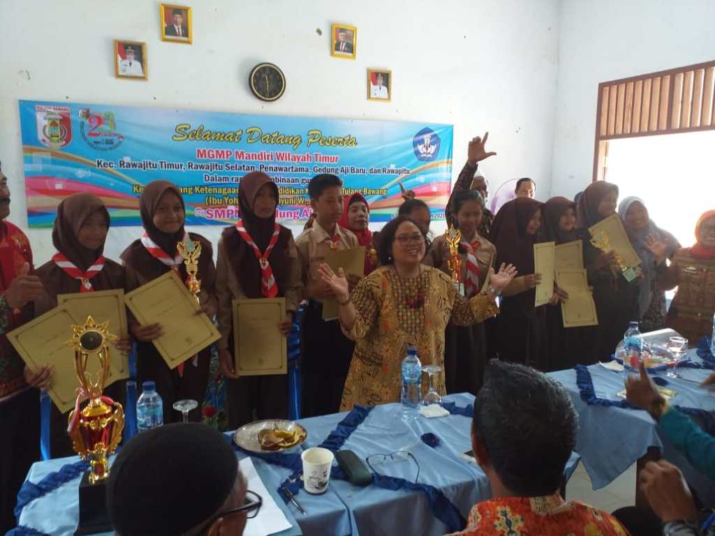 4. Acara Pembukaan Kegiatan MGMP-Mandiri di aula SMPN 1 Gedungaji Baru, dipandu oleh Siti Maryamah, S.Pd.