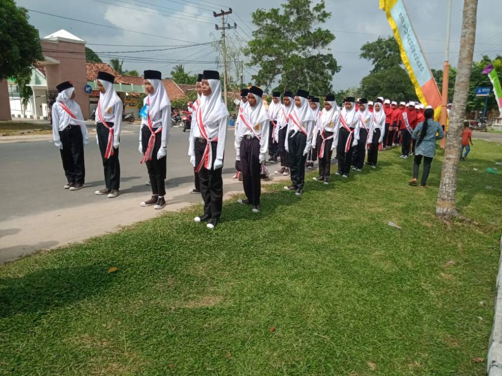 Pelepasan peserta Lomba gerak jalan dalam rangka menyambut hari jadi Kabupaten Tulang Bawang ini dihadiri oleh Sekda Kab.Tulang Bawang, Ir. Anthoni, M.M., Dandim, Waka Polres, Kajari, Kemenag, Ketua Pengadilan Agama dan Pejabat Pemkab Tulang Bawang serta para pelajar peserta lomba.