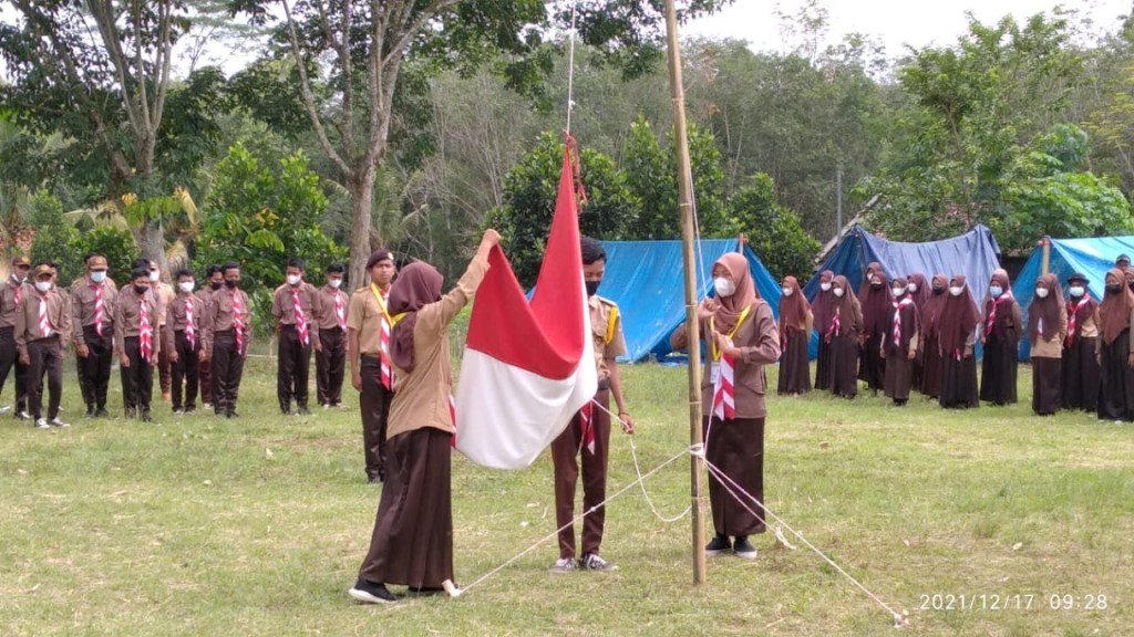 smpn1gedungajibaru.school.blog, Penawartama – Ketua Kwartir Ranting ( Kwarran ) Penawartama H.M. Ali Mahmud, S.Pd.I, M.M., membuka acara pelantikan Pindah Golongan Ambalan SMK Plus Sebelas Mei Penawartama. Upacara pembukaan pelantikan pindah golongan dari Pramuka penggalang ke penegak dilaksanakan di halaman belakang kampus SMK Plus Sebelas Mei Penawartama pada hari Jumat, 17 Desember 2021.