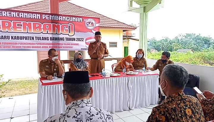 smpn1gedungajibaru.school.blog, Gedung Aji Baru – Musyawarah Perencanaan Pembangunan (Musrenbang) Kec. Gedung Aji Baru Kab. Tulang Bawang Tahun 2022 digelar pada hari Selasa, 8 Februari 2022 di aula kecamatan Gedung Aji Baru. Musrenbang yang mengusung tema Partisipasi Masyarakat dalam Perumusan Perencanaan Pembangunan Kab. Tulang Bawang, Bergerak Melayani Warga (BMW) Tulang Bawang Aman, Mandiri dan Sejahtera” dibuka oleh Camat Gedung Aji Baru, Sutiyo, S.Pd.,M.Pd.
