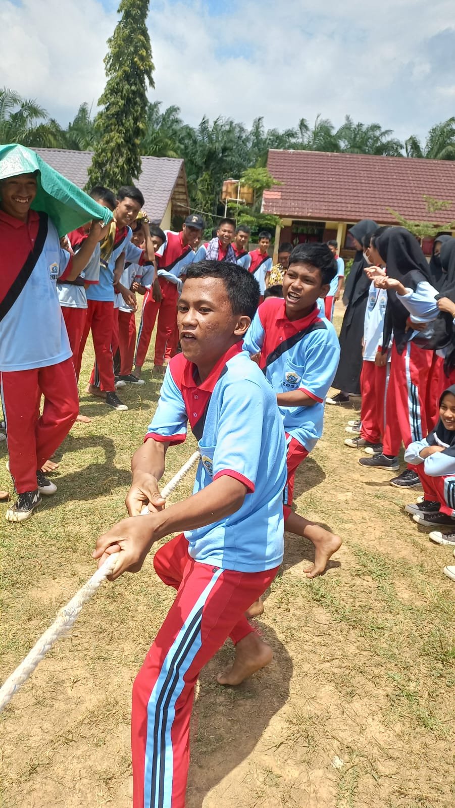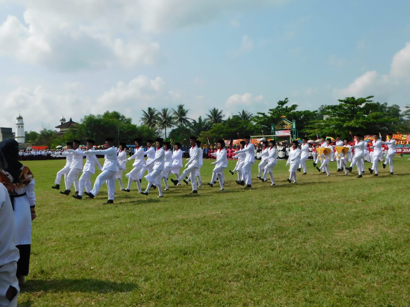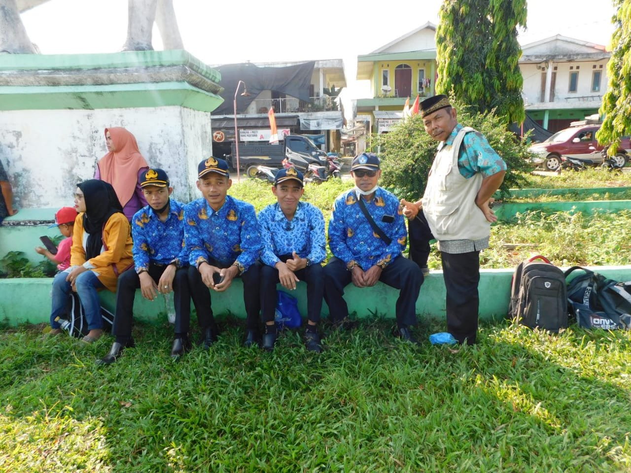 Bergotong royong mengumpulkan ‘patok mini’. “Kita sortir, ya …”, kata Pak Yo mengarahkan anak-anak.Bangga menjadi bagian dari anggota ‘paskibra’ Kec. Gedung Aji Baru. Selamat dan sukses buat anak-anak hebat … dari kiri ke kanan Sekar Safira Shalsa, Bambang, dan Fitria Agustin.Ambil bagian dalam Upacara HUT ke-77 RI sebagai anggota regu koor.Ramah tamah usai mengikuti upacara HUT ke-77 RI ala Spensagaba. Di bawah pohon pun jadilah ….Rileks sejenak. Berfoto ala Spensagaba …Menyiapkan perlengkapan ‘lomba khas 17-an’ … tarik tambang.Go, go, go … Tarik, mang …Jalan Pintas Batu Ampar menjadi saksi kesungguhan kami berlatih Gerak Jalan. Debu dan panas tidak kami hiraukan.