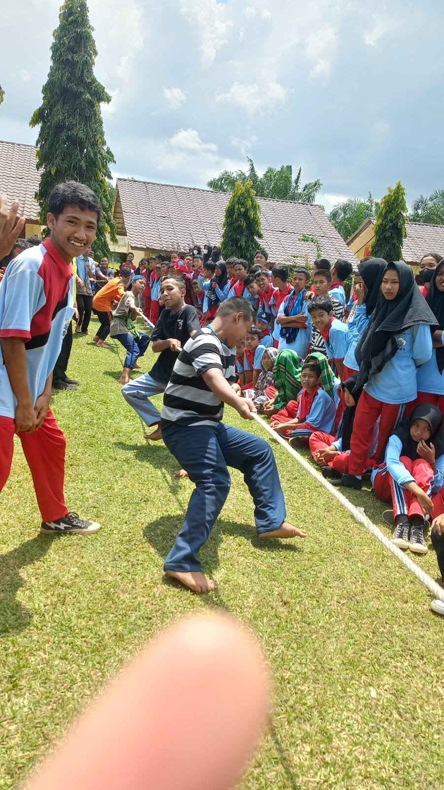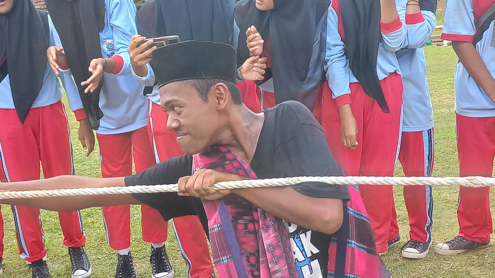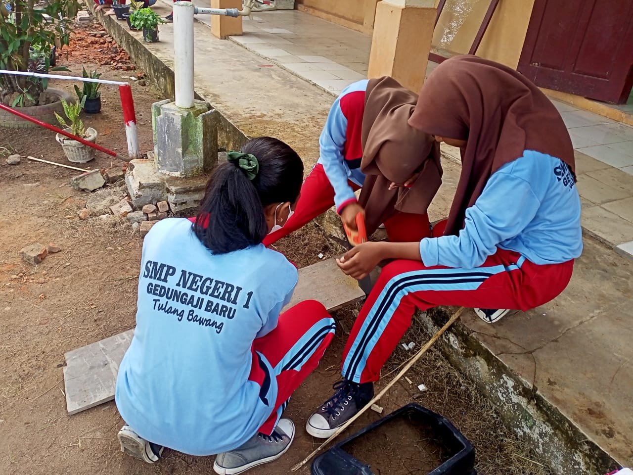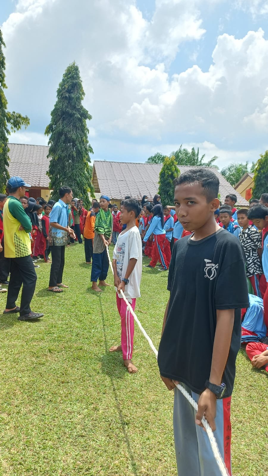 Bergotong royong mengumpulkan ‘patok mini’. “Kita sortir, ya …”, kata Pak Yo mengarahkan anak-anak.Bangga menjadi bagian dari anggota ‘paskibra’ Kec. Gedung Aji Baru. Selamat dan sukses buat anak-anak hebat … dari kiri ke kanan Sekar Safira Shalsa, Bambang, dan Fitria Agustin.Ambil bagian dalam Upacara HUT ke-77 RI sebagai anggota regu koor.Ramah tamah usai mengikuti upacara HUT ke-77 RI ala Spensagaba. Di bawah pohon pun jadilah ….Rileks sejenak. Berfoto ala Spensagaba …Menyiapkan perlengkapan ‘lomba khas 17-an’ … tarik tambang.Go, go, go … Tarik, mang …Jalan Pintas Batu Ampar menjadi saksi kesungguhan kami berlatih Gerak Jalan. Debu dan panas tidak kami hiraukan.