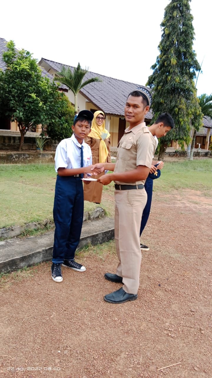 Atas pencapaiannya itu, sekolah memberikan ‘reward’ kepada Bima dan kelas 9.a. Reward diberikan langsung kepadanya oleh Yusmala Adinta, S.Pd. guru sekaligus pembina OSN – IPS disaksikan oleh wali kelas 9.a – Melinda, S.Pd.