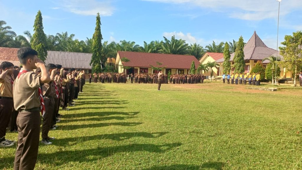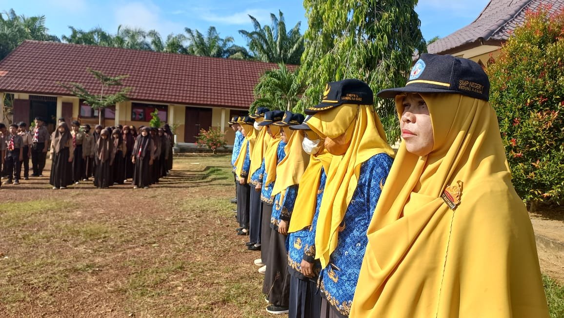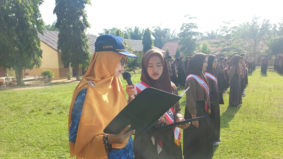 Upacara bendera memperingati Hari Kesaktian Pancasila dilaksanakan di halaman SMPN 1 Gedung Aji Baru pada Sabtu, 1 Oktober 2022 pagi.