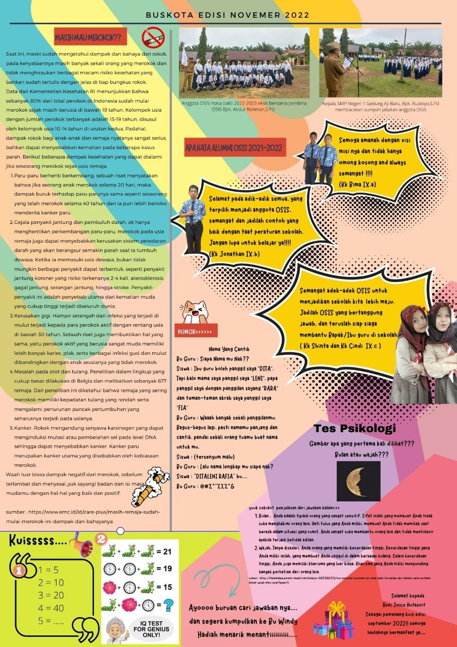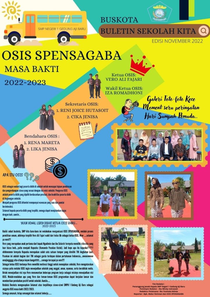 Buskota ini adalah akronim dari “Buletin Sekolah Kita” yakni media komunikasi SMPN 1 Gedung Aji Baru. Media yang mengenalkan dunia Jurnalistik sejak dini kepada siswa-siswi SMPN 1 Gedung Aji Baru.