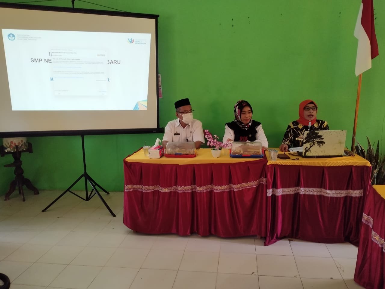 Hadir pada acara itu Pengawas Pembina SMP Disdik Tulang Bawang, wilayah Kec. Penawartama, Gedung Aji Baru dan Rawapitu Siti Wardiyatmi, S.Pd., M.Pd.