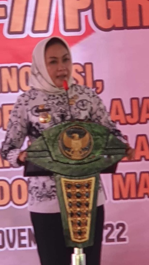 Di bawah tenda yang dominasi warna merah putih, seribuan guru dari seluruh kabupaten berjuluk “Sai Bumi Nengah Nyappur” tumpah ruah menyambut bupati wanita pertama di Tulang Bawang itu.