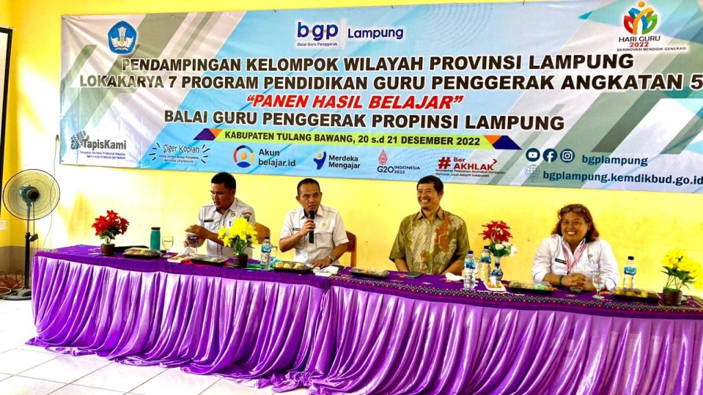 Spensagaba, Tulang Bawang – Kepala Dinas Pendidikan Kabupaten Tulang Bawang Ristu Irham, S.Pd., M.M. membuka secara resmi Lokakarya 7 Pendidikan Guru Penggerak (PGP) Angkatan ke-5 Kabupaten Tulang Bawang.