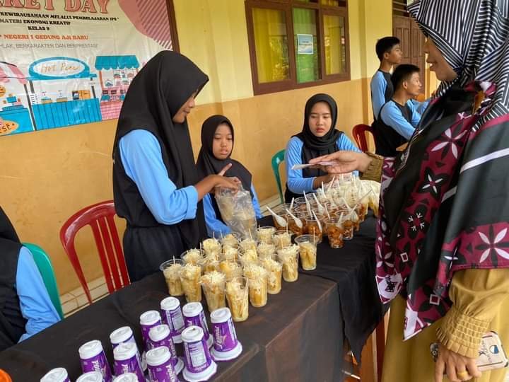 Windy Indrawati, S.Pd., M.Pd. salah seorang guru senior di SMPN 1 Gedung Aji Baru sekaligur motor penggerak kegiatan mengatakan, “Dalam kegiatan Market Day ini murid-murid mencoba melakukan usaha sederhana guna mendapatkan pembelajaran untuk menjadi seorang wirausahawan”.