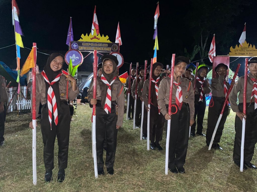 Pada penyelenggaraan kemah bhakti itu Gudep SMPN 1 Gedung Aji Baru mengirimkan 2 regu putra dan putri terbaiknya.