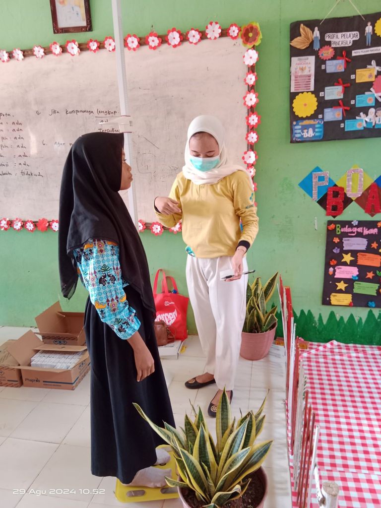 Pada hari Kamis, 29 Agustus 2024 yang lalu telah dilaksanakan penyuluhan kesehatan, kebersihan pribadi dan lingkungan, pemeriksaan kesehatan, pengukuran tinggi dan berat badan, pembagian tablet tambah darah.