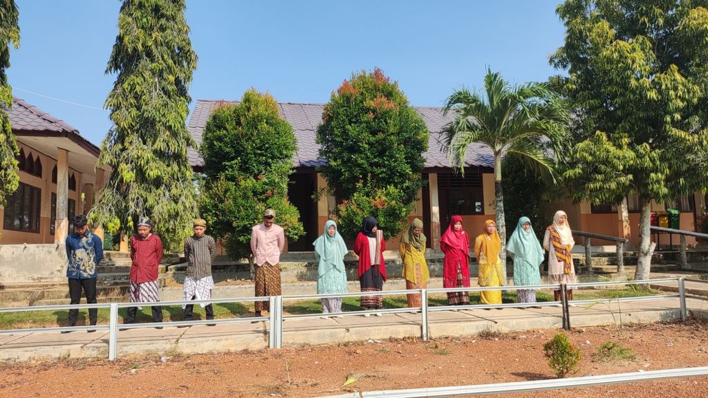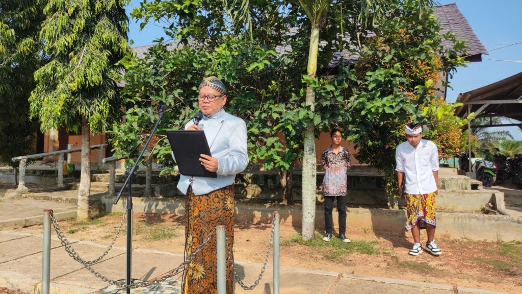 Bertindak sebagai Pembina Upacara adalah Kepala Sekolah Rustoyo, S.Pd. yang berbusana adat Jawa.