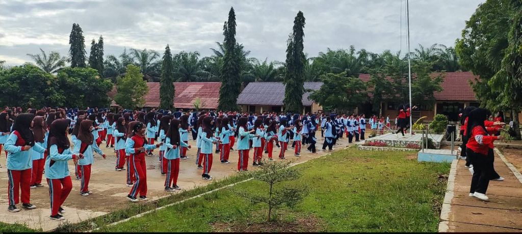 Spensagaba, Gedung Aji Baru – Persatuan Wanita Olahraga Indonesia (Perwosi ) Kecamatan Gedung Aji Baru menggelar sosialisasi Senam Udang Manis di SMPN 1 Gedung Aji Baru.