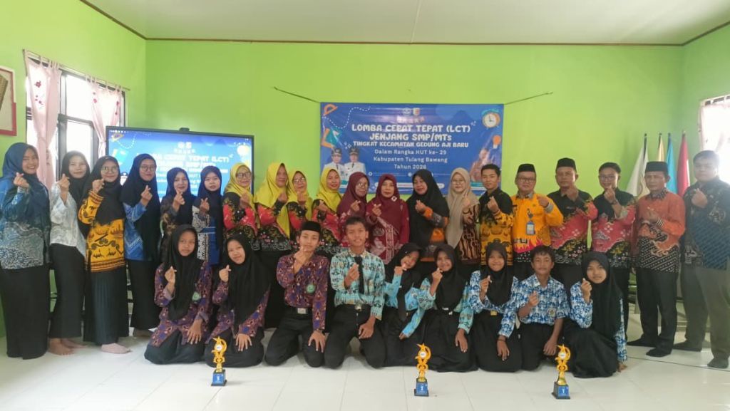 Spensagaba, Gedung Aji Baru – SMPN 1 Gedung Aji Baru yang juga populer panggilan “Spensagaba” meraih posisi sebagai runner-up dalam Lomba Cepat Tepat (LCT) jenjang SMP/Mts Kecamatan Gedung Aji Baru yang digelar di SMP PGRI 02 Gedung Aji Baru pada hari Kamis, 26 Februari 2026.